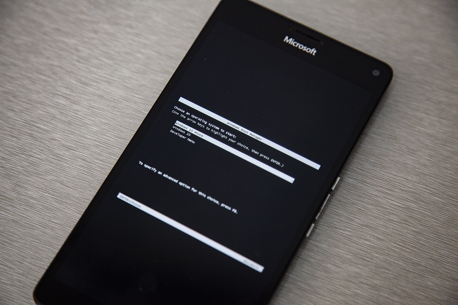 开机的时候,你会看到一个和Windows NT 6.X一样的启动菜单。你需要使用音量键选择启动选项,并使用拍照键确定。默认情况下,10秒钟内未操作会直接进入Windows 10 Mobile,这里我们选择Windows 10,也就是本文要介绍的。