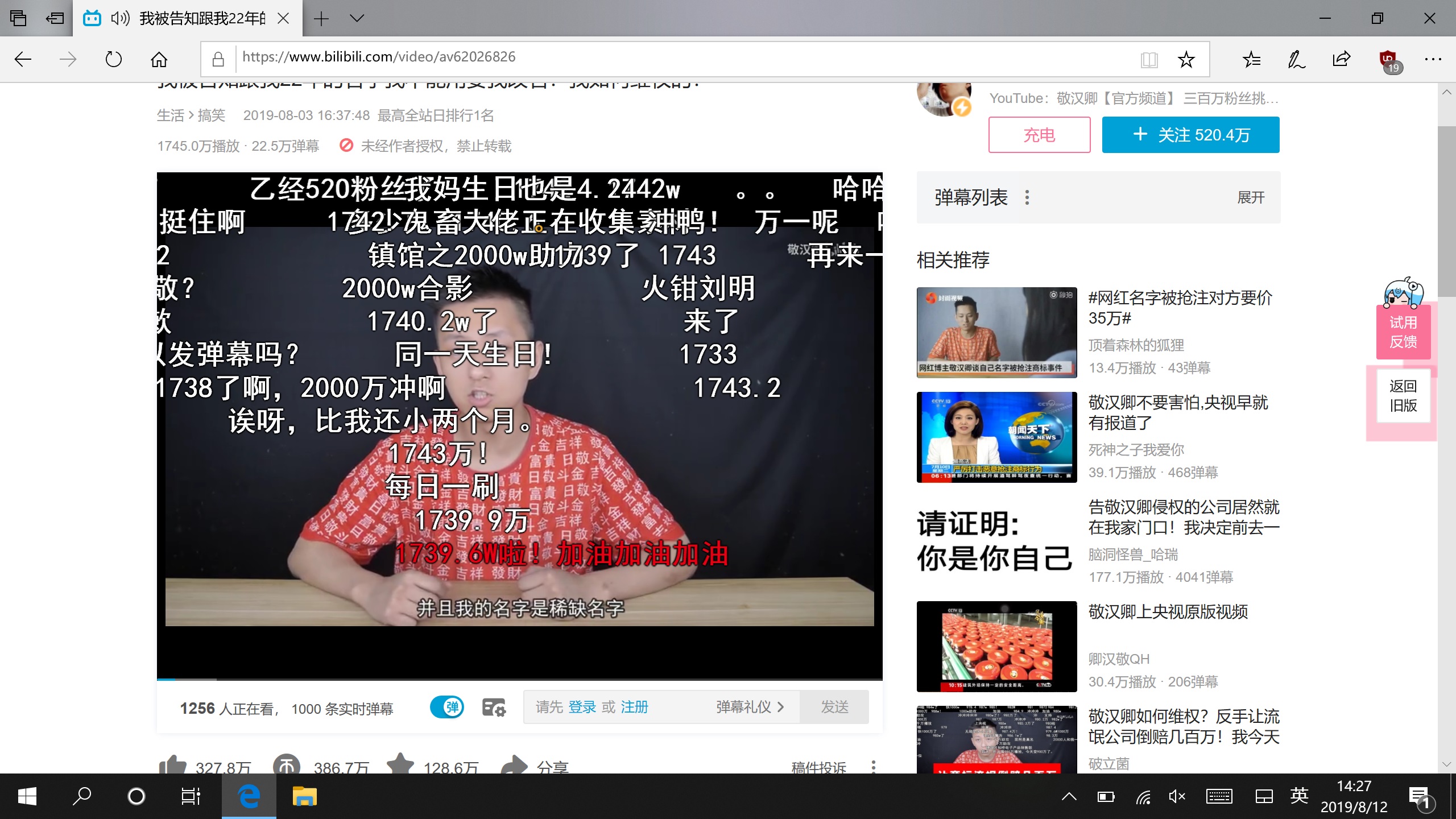 由于有了一个可用的GPU驱动,在系统自带Edge浏览器滑动网页没有遇到卡顿现象。同时,播放视频也成为了可能。在B站播放视频的时候,即便有大量弹幕,也没有遇到严重掉帧现象。